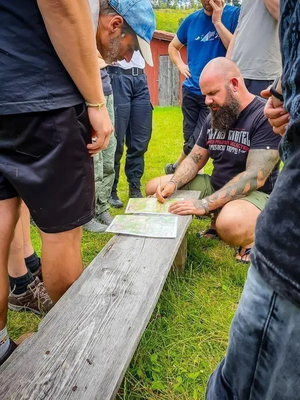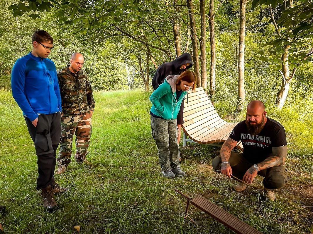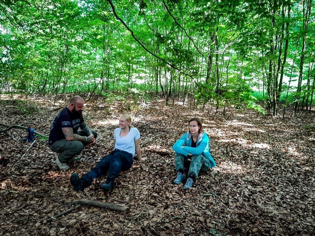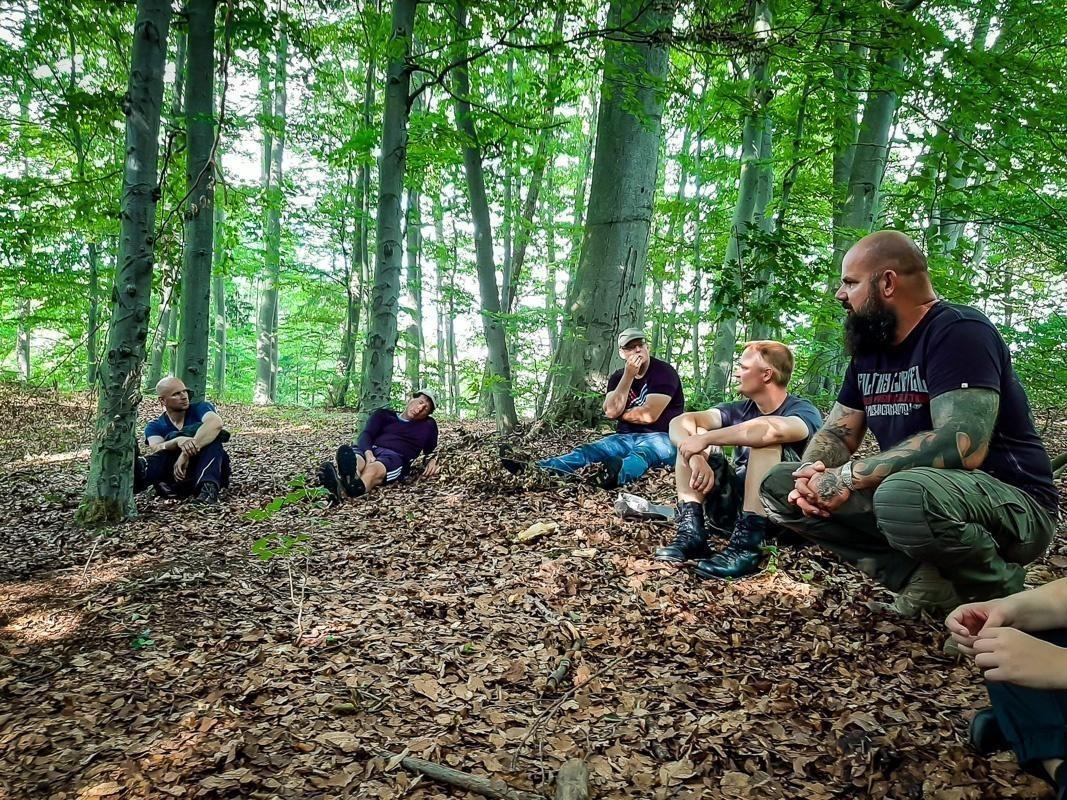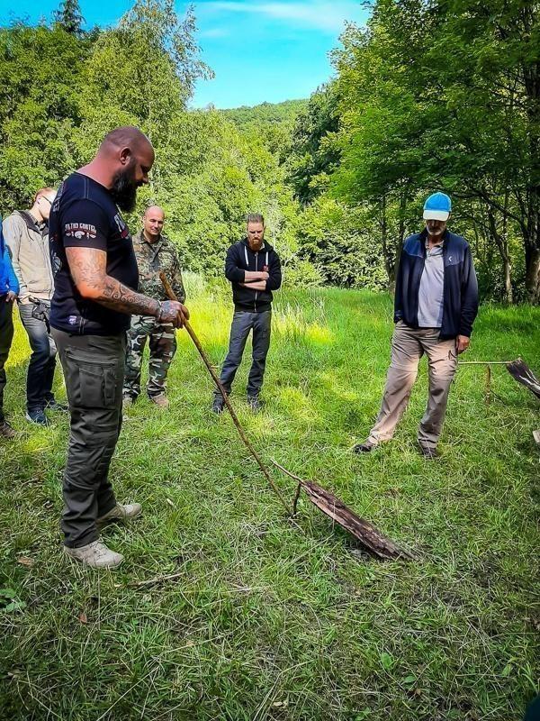 Ein weiterer wichtiger Bestandteil des Trainings war der Bau von Unterständen und Wetterschutz. Die Teilnehmer erlernten, wie sie aus Ästen und Blättern eine sichere Unterkunft schaffen konnten, um sich vor den Elementen zu schützen. Diese Fähigkeiten sind essenziell für das Überleben in der Natur und wurden während des Trainings intensiv geübt. Zudem wurde das sichere Arbeiten mit dem Messer und das Schnitzen geübt, um Werkzeuge herzustellen und die Umgebung zu gestalten.