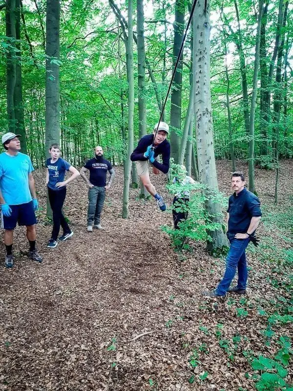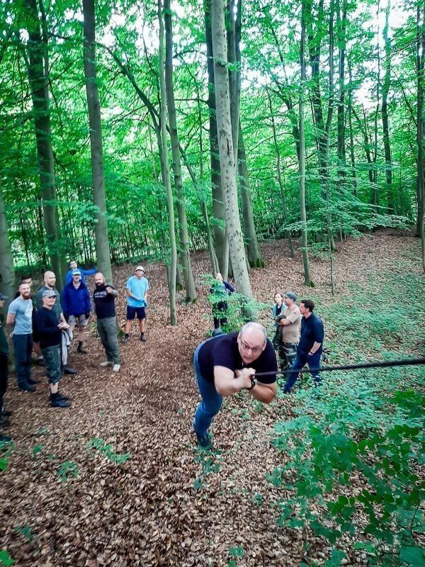 Zusätzlich zu den grundlegenden Survival-Techniken wurden auch ergänzende Übungen wie das Abseilen in Notsituationen und der Umgang mit einer selbstgebauten Seilbrücke durchgeführt. Diese Aktivitäten förderten nicht nur die körperliche Fitness, sondern auch das Vertrauen in die eigenen Fähigkeiten. Die Gruppe arbeitete eng zusammen und unterstützte sich gegenseitig, was den Teamgeist stärkte und die Lernerfahrung bereicherte.