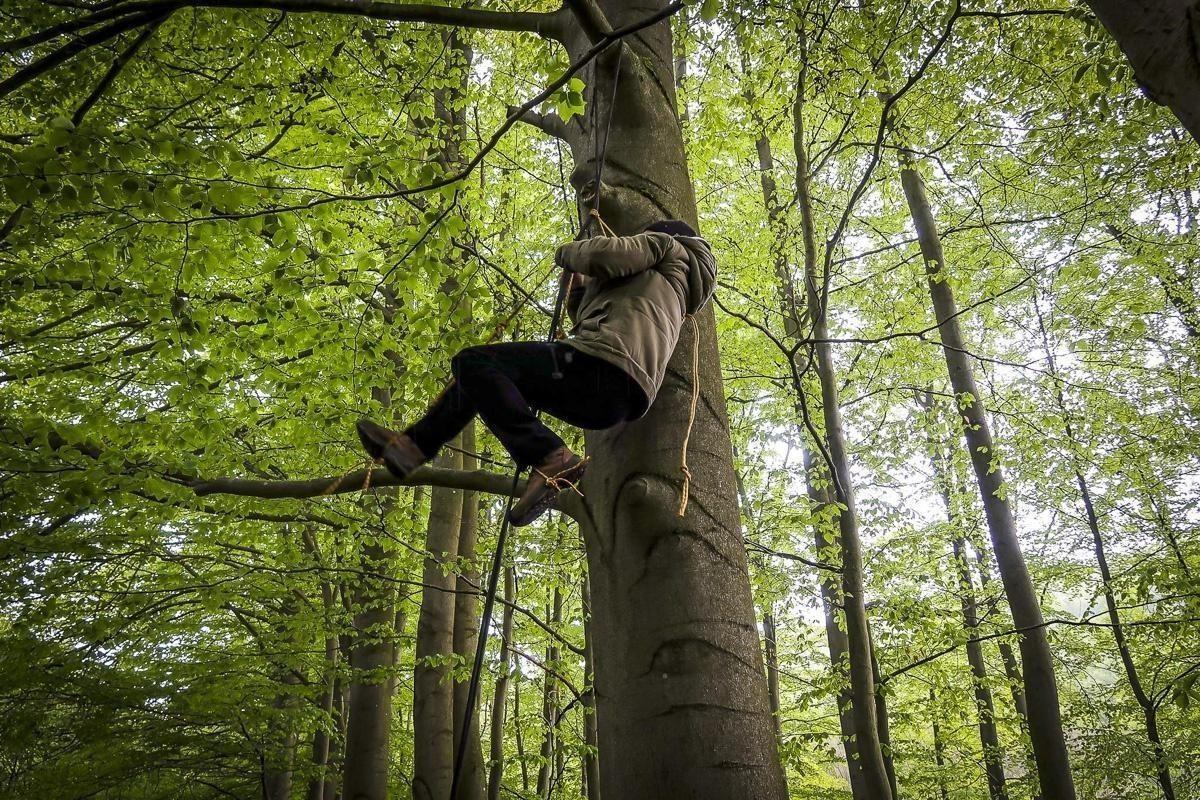 Seilbrücke wird zur Fortbewegung im Wald genutzt