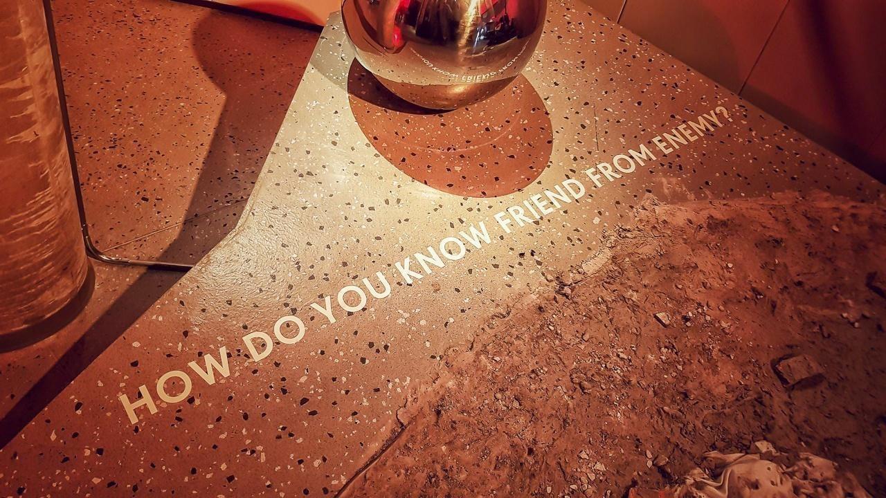 Panzer auf einer Plattform mit der Frage „WHEN IS A WAR WON? “ im Hintergrund