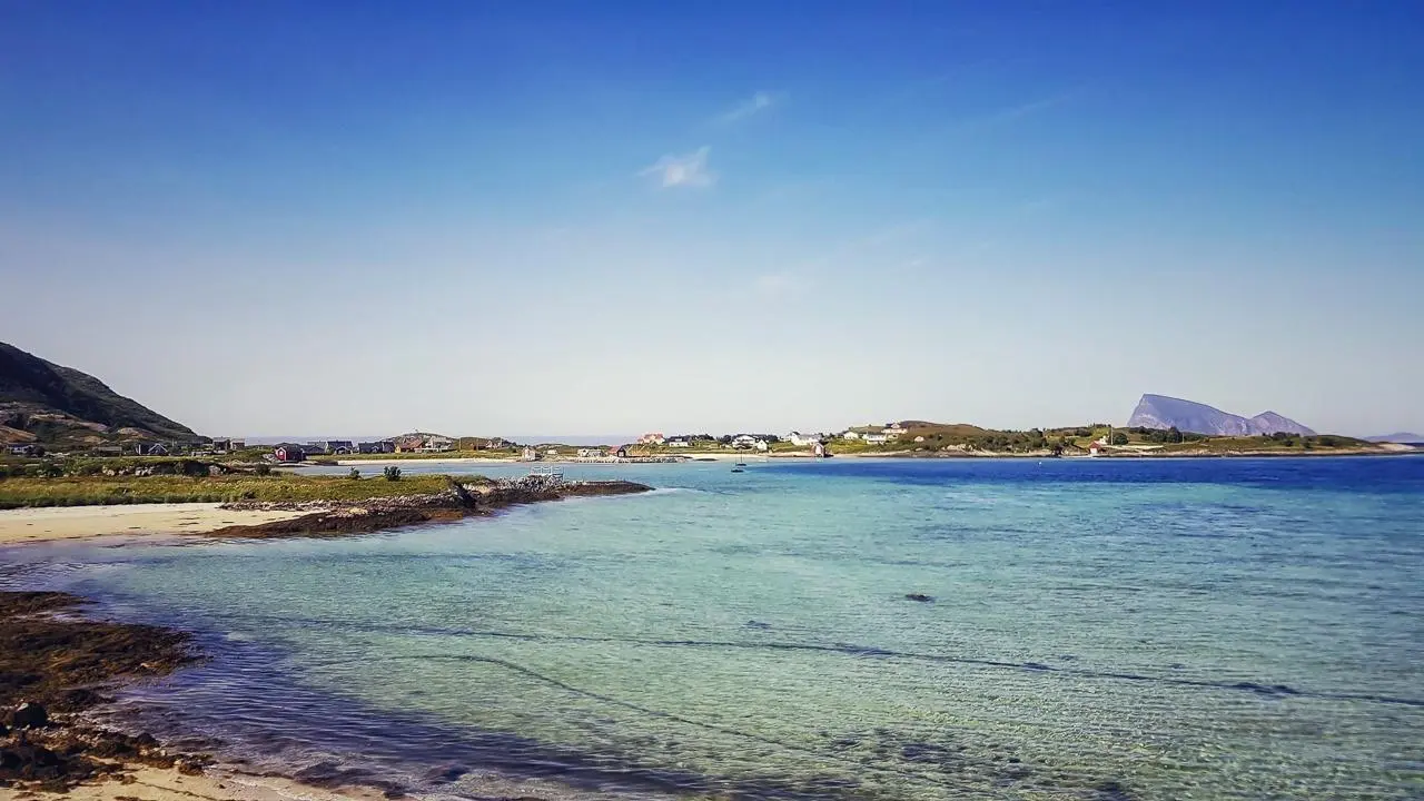 Klares Wasser trifft auf sandigen Strand und grüne Ufervegetation