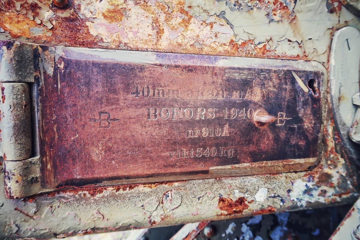 Verrostete Panzerkuppel mit zwei Kanonen, umgeben von Bäumen und Gestrüpp