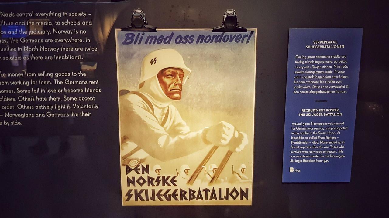 Rekrutierungsplakat für die norwegische Skibataillon mit einem Soldaten in Winterkleidung