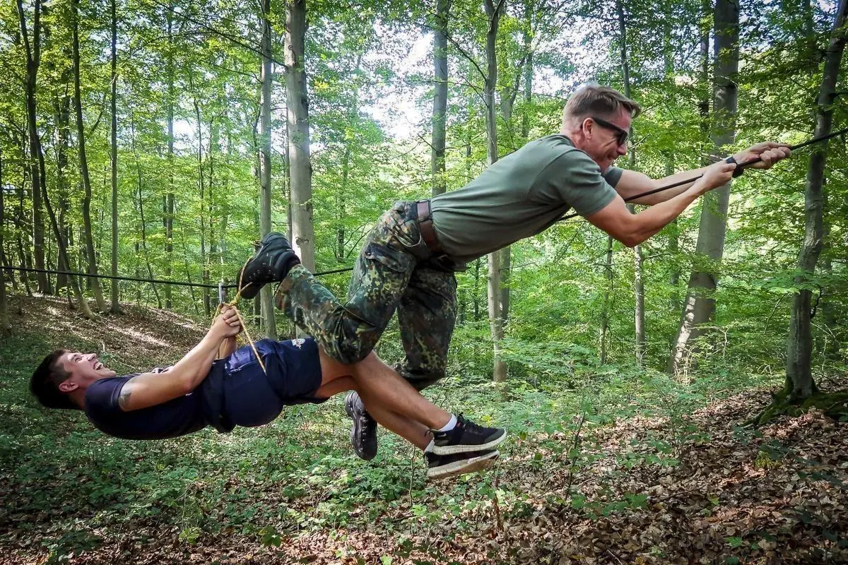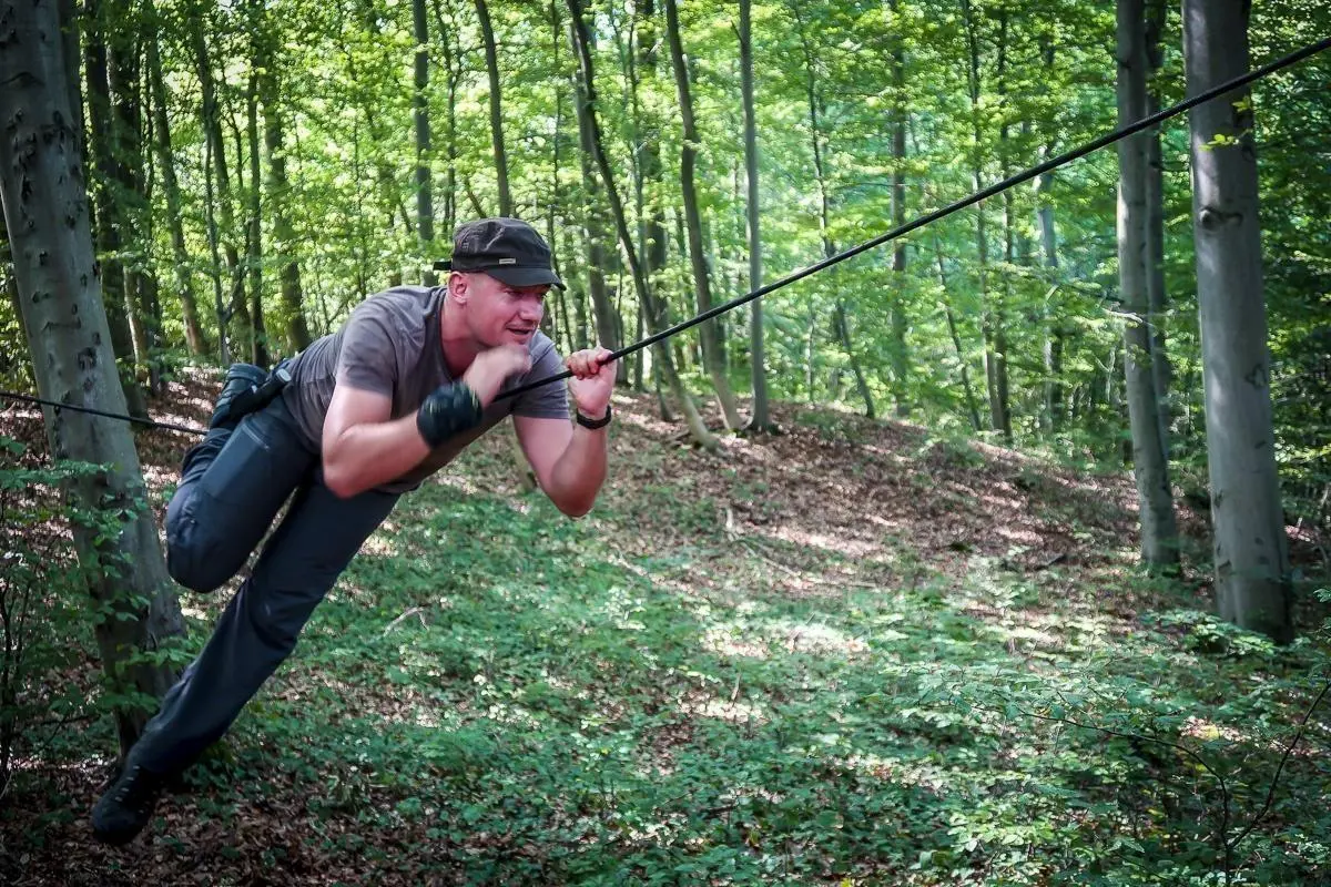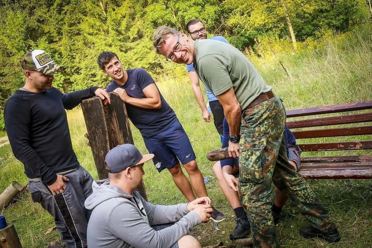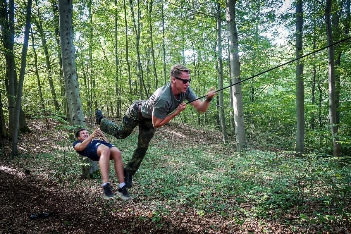 Zusätzlich wurden verschiedene Übungen zur Teamarbeit durchgeführt. So hoben die Teilnehmer gemeinsam Baumstämme an und unterstützten sich gegenseitig beim Bau der Unterkünfte. Diese praktischen Erfahrungen förderten nicht nur das Gemeinschaftsgefühl, sondern auch die Fähigkeit, in Gruppen effektiv zusammenzuarbeiten. Abseilen in Notsituationen wurde ebenfalls behandelt, um den Teilnehmern ein Gefühl für Sicherheit und Kontrolle in kritischen Lagen zu geben.