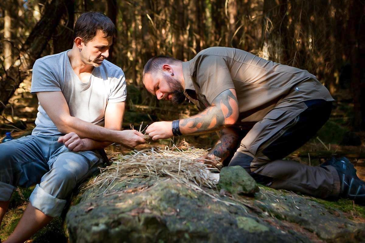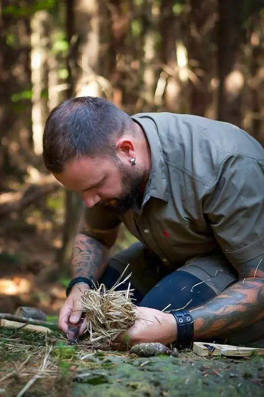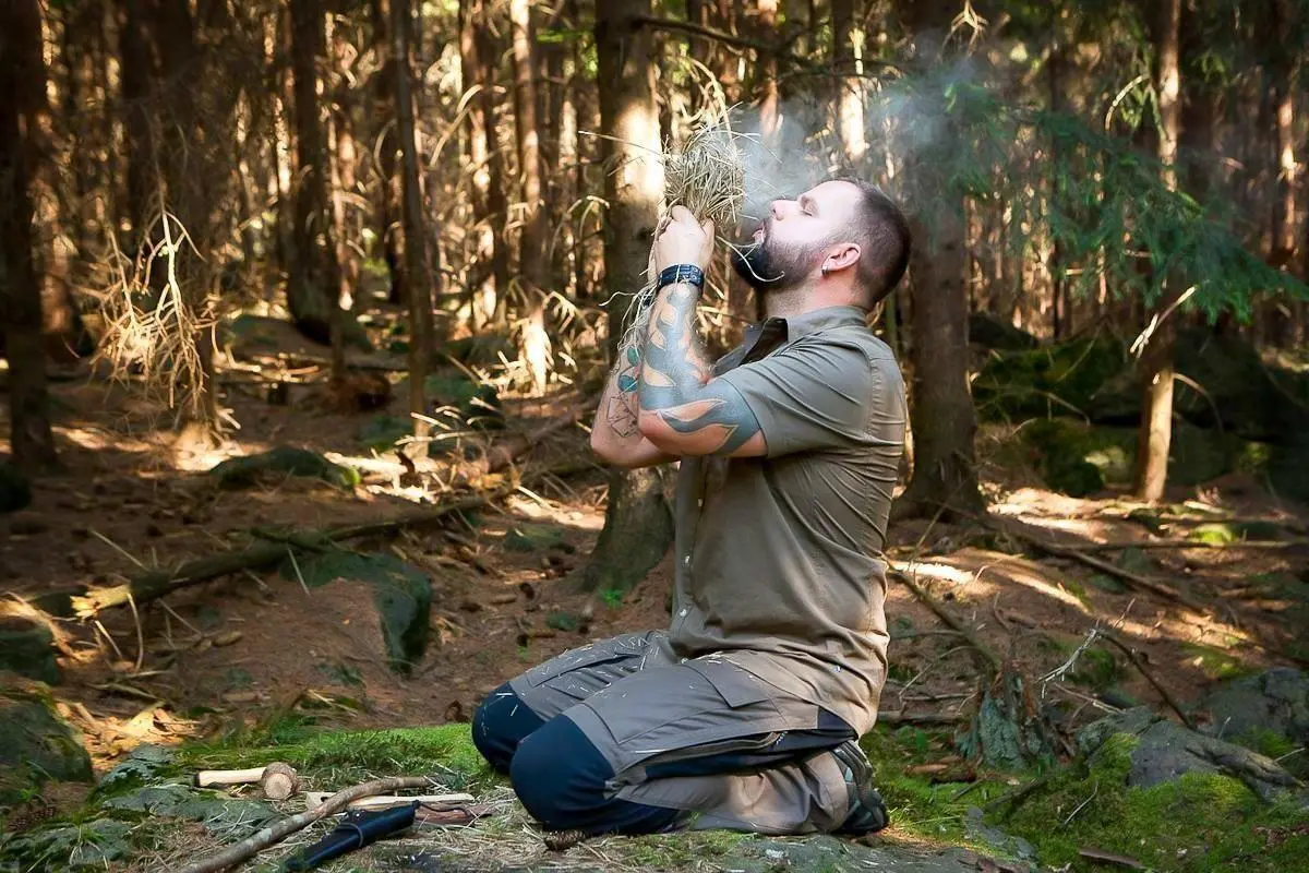 Die Teilnehmer hatten auch die Gelegenheit, sich mit der Feuererzeugung vertraut zu machen. Sie übten das Blasen in trockenes Gras und andere Materialien, um ein Feuer zu entfachen. Das Zünden eines Feuers in einer kontrollierten Umgebung stellte sicher, dass sie die Technik sicher beherrschten. Während des Trainings wurde auch auf die Bedeutung der richtigen Lagerorganisation hingewiesen, um im Notfall schnell auf benötigte Materialien zugreifen zu können. Diese praktischen Erfahrungen trugen dazu bei, das Vertrauen in die eigenen Fähigkeiten zu stärken und ein besseres Verständnis für die Herausforderungen des Überlebens in der Natur zu entwickeln.