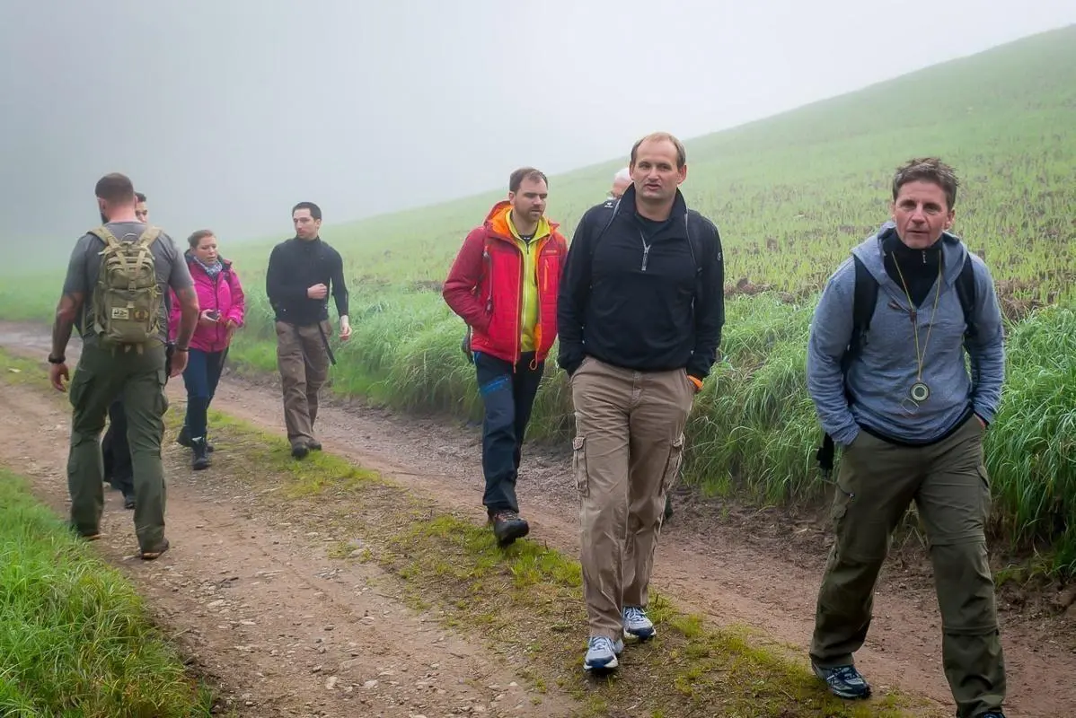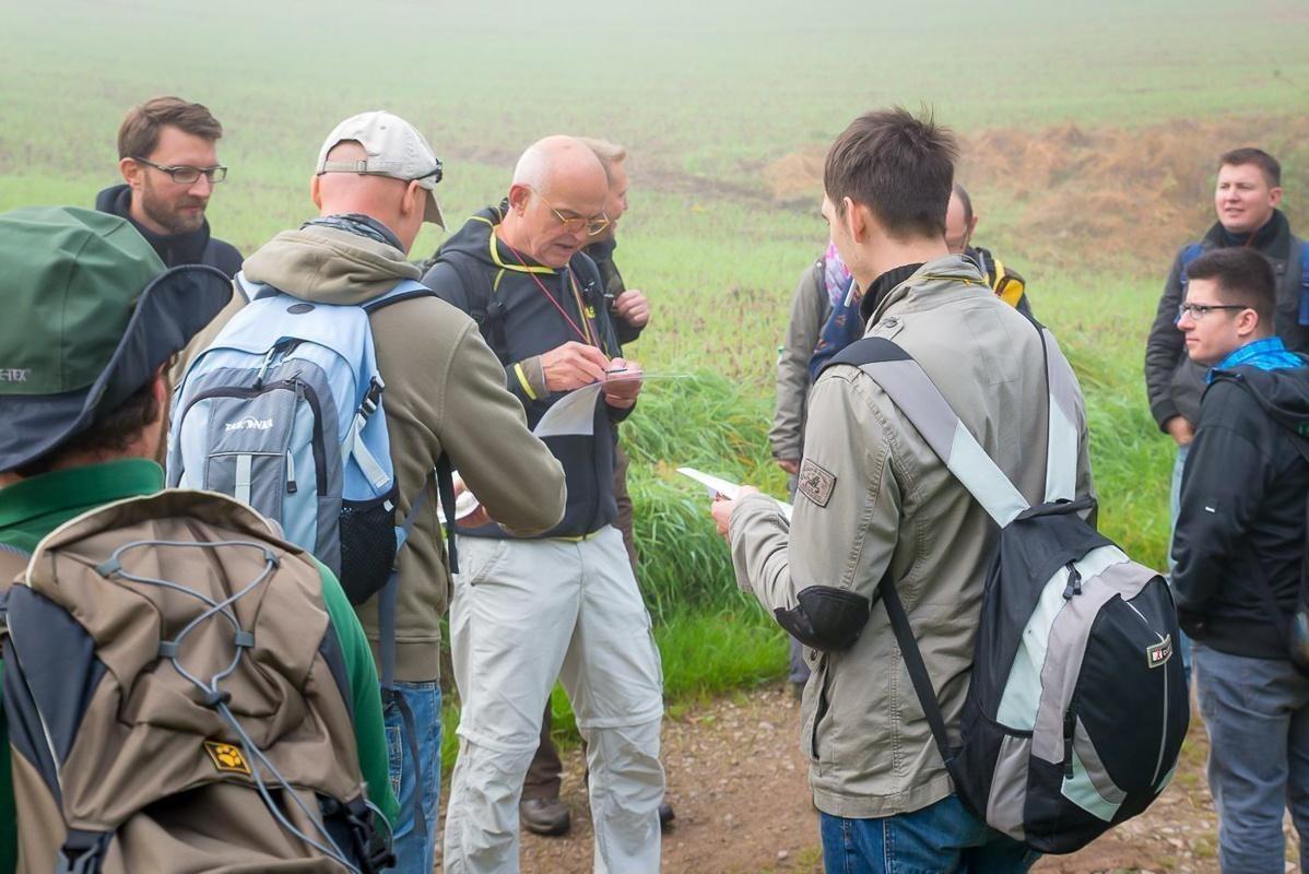 Gruppe beobachtet Anleitung zur Orientierung im Wald
