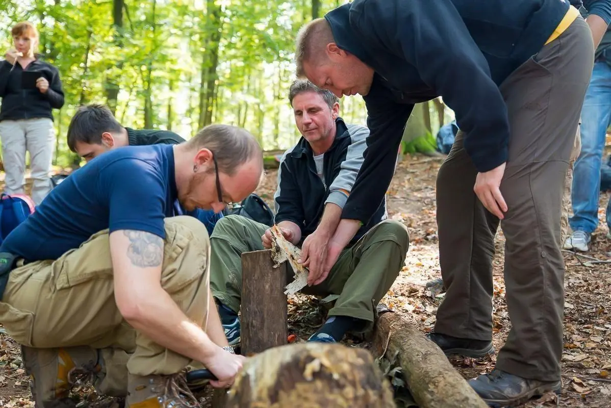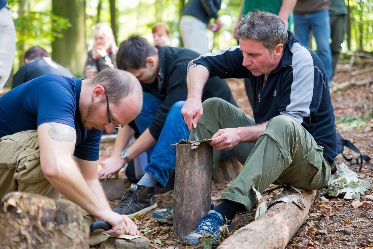 Am 03.10.2014 fand ein Survival-Teambuilding-Training der Teamlog GmbH statt, bei dem die Teilnehmer grundlegende Techniken des Überlebens erlernten. Im Rahmen des Trainings beschäftigten sich die Teilnehmer intensiv mit der Zunderaufbereitung und Glutpflege, um in Notsituationen Feuer entfachen zu können. Diese Fähigkeiten sind essenziell für die Sicherstellung von Wärme und Sicherheit in der Wildnis. Zudem wurde das sichere Arbeiten mit dem Messer geübt, was für die Herstellung von Werkzeugen und das Schnitzen von Zunder von großer Bedeutung ist.