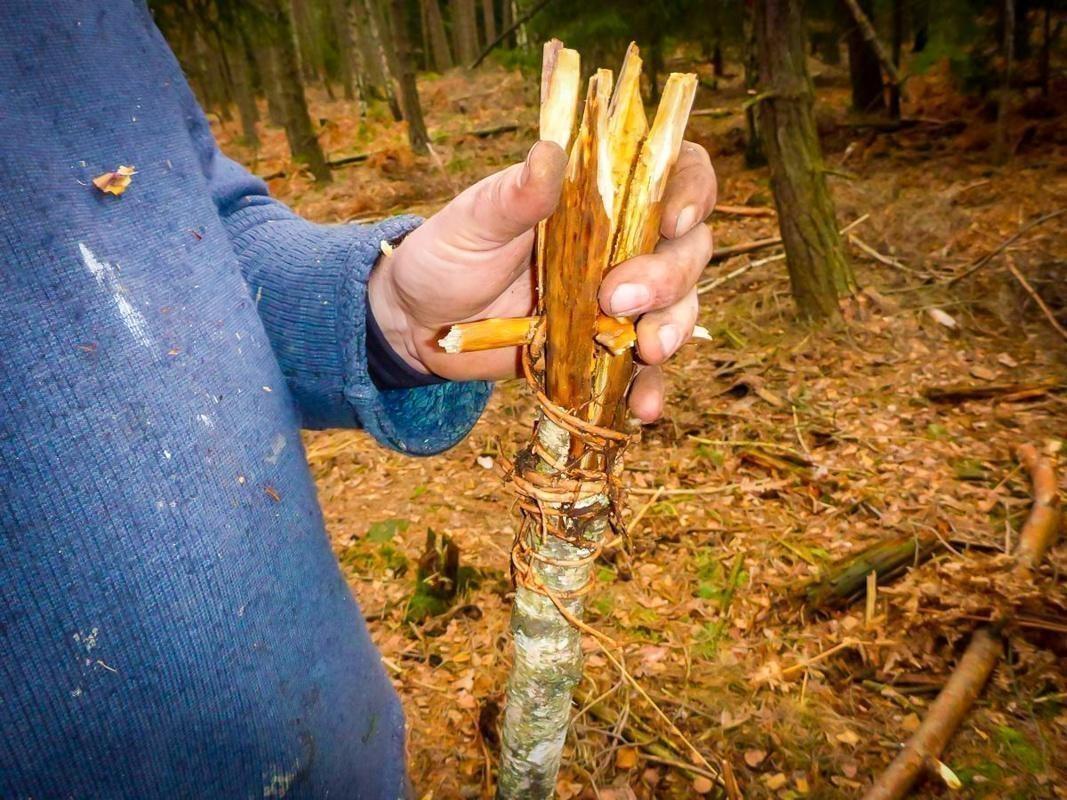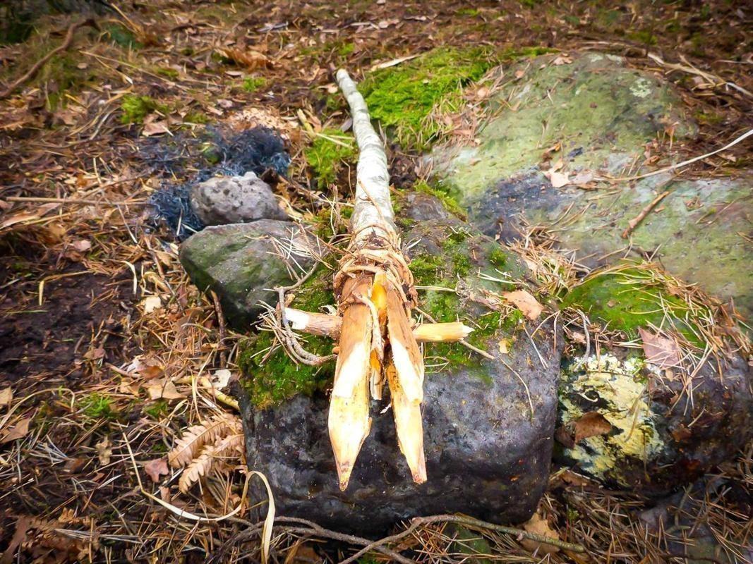 Ergänzend wurden drei weitere Themen veranschaulicht: Beim Feuerbohren ging es um Technikverständnis und Rhythmus, um aus Naturmaterialien zuverlässig eine Glut zu erzeugen. Ein einfacher Fischspeer wurde als Beispiel für improvisierte Jagdwerkzeuge besprochen und im flachen Wasser nur gegen Übungsziele getestet. Das Funktionsprinzip einer Schlagfalle wurde rechtlich eingeordnet und ausschließlich theoretisch bzw. mit ungefährlichen Dummies demonstriert; praktische Nutzung und Fang sind in Deutschland reguliert und außerhalb genehmigter Kontexte nicht zulässig.