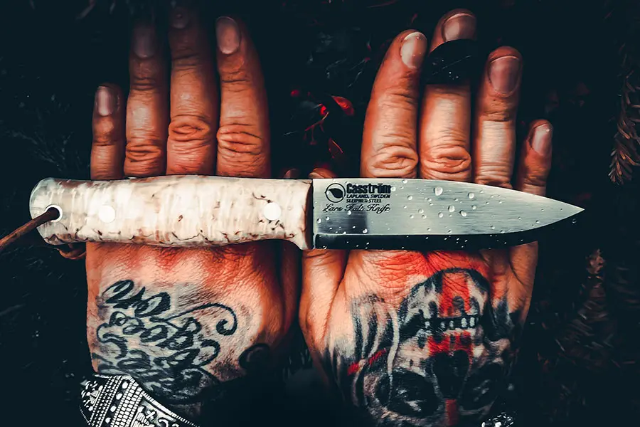 - Full Tang: Bei dieser Bauweise erstreckt sich das Metall der Klinge durch den gesamten Griff. Dies bietet eine außergewöhnliche Stabilität und Haltbarkeit, da es keine Schwachstellen zwischen Klinge und Griff gibt. Ein Full Tang-Messer kann selbst bei intensiven Arbeiten, wie dem Spalten von Holz, zuverlässig eingesetzt werden. Der Griff wird oft mit Schalen aus verschiedenen Materialien, wie Holz oder Kunststoff, ummantelt.
